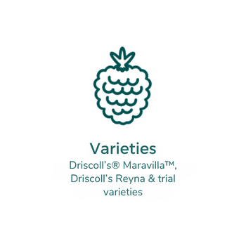 Our flagship raspberry variety, Driscoll’s Maravilla, identified in trials here at Clock House Farm, has been grown here for 15 years and is still surpassing all competition for taste and quality.